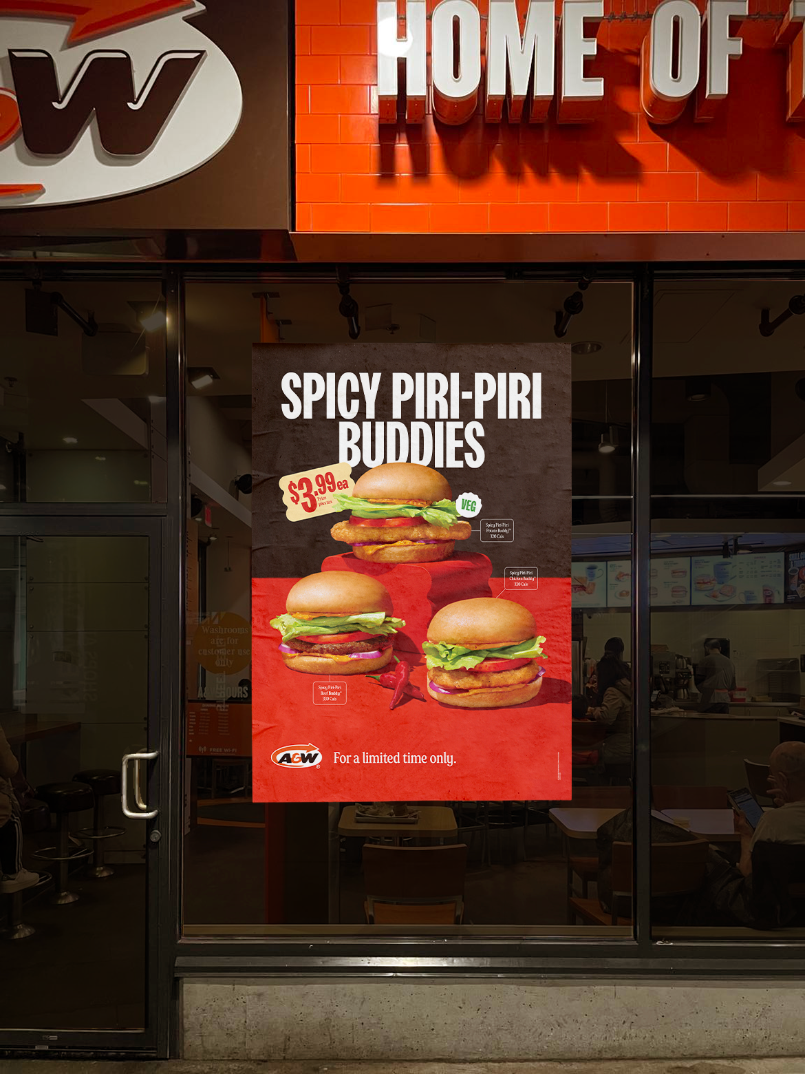 A&W added a new burger for a limited time. The goal was to expand their burger offerings by creating the Spicy Piri-Piri burger.